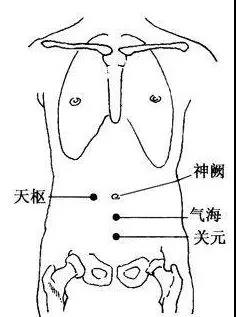 艾条火力定灸足三里、大椎、气海、关元、神阙(肚脐)、涌泉、命门等穴位。