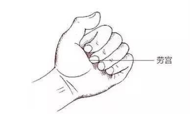 劳宫穴:劳宫穴位于手心部。一手握拳,搓揉另一只手的手心部,直到感到手心微热,再换另一支手,交替进行。