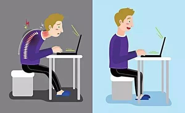 不论是站立还是坐着,前倾姿势会让腰椎负荷大大增加;