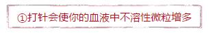 打针使药液直接进入人体的血液循环,由于人体的毛细血管直径一般为4-7微米,那么经常或大量的药物输液进入血管,不溶性微粒就会大量地蓄积在微血管丰富的心、肺、肾等重要器官内,久而久之,就易引起微血管的血栓梗塞、肺纤维化,以及局部组织水肿、炎症等。