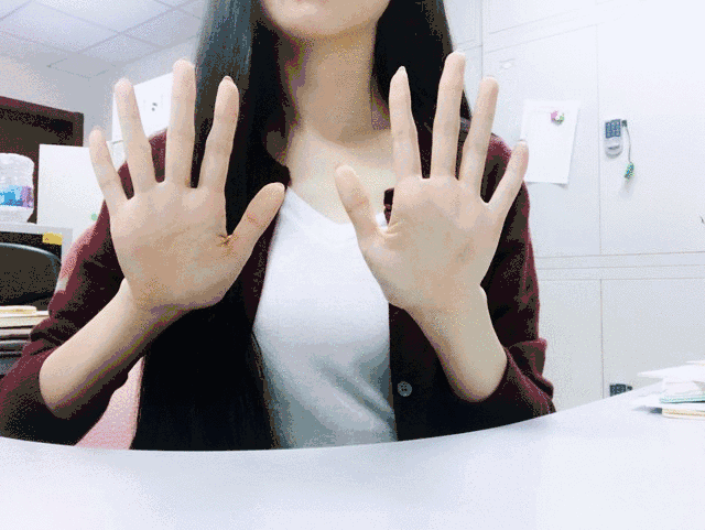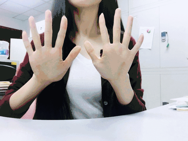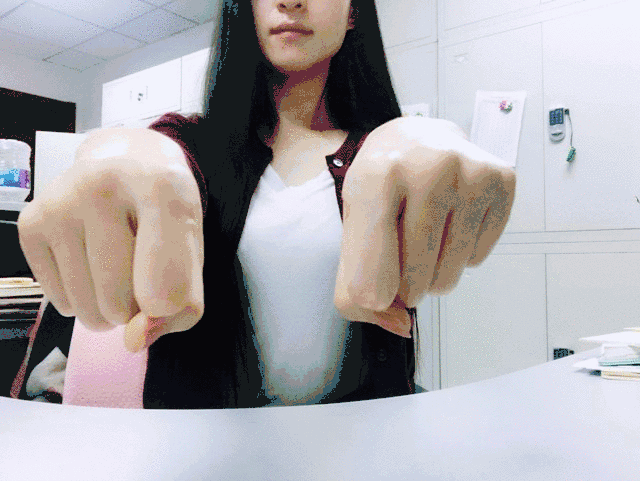 紧握拳头,然后把手指一个一个地伸开,尽量向后伸,使手指变为扇形。