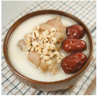 用料:猪脊骨 1 具,大枣 150 克,莲子 100 克,木香 3 克,甘草 10 克。