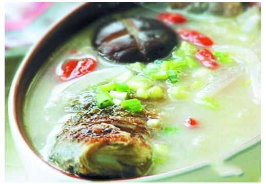 用料:冬笋 100 克,鲫鱼 1 条( 250 克),黄酒、生姜片、精盐、味精、精制植物油适量。