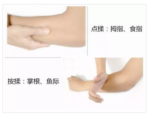 点揉按揉操作手法:固定一点,旋转按揉,逐渐加力