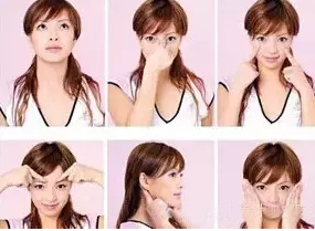 转眼:双手托腮,让眼球按上、下、左、右的顺序转动10次,接着再逆时针、顺时针各转动10次。