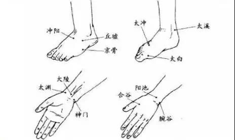 配太冲,称四关穴,有镇静安神,平肝熄风作用,主治癫狂,头痛,眩晕,高血压。