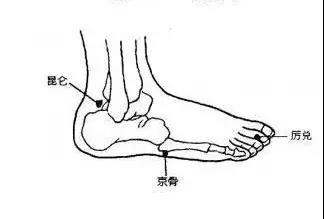 配昆仑、申脉,有通经活络消肿止痛的作用,主治外踝肿痛。