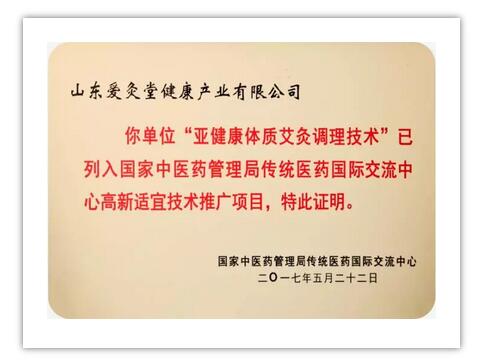 6:爱灸堂“亚健康体质艾灸调理技术”成为国家中医药管理局高新适宜推广项目