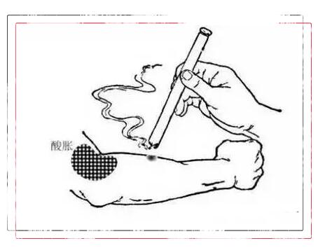 1:如果感觉很烫,可以移动艾条,体会灸感,如果周围有里面热并且不是很烫的位置,可以选择此位置。