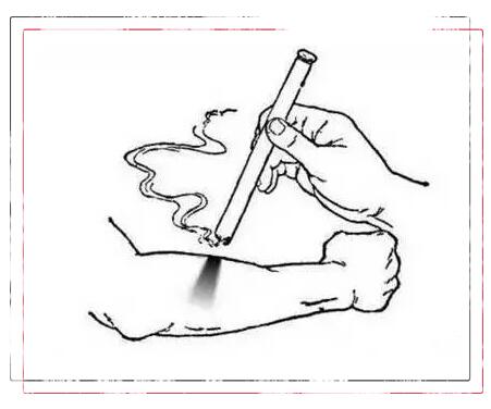 2:施灸时应及时调整灸火与皮肤间的距离。有些患者寒气大,初灸时,对艾火的忍耐力强,常常不知不觉将艾火靠近皮肤,结果将皮肤灼痛。实际上以灸至皮肤发红为度。