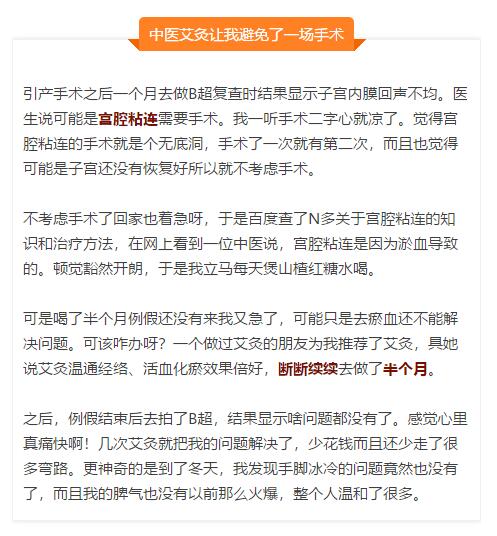宫腔粘连一个月(慢病),断断续续艾灸半个月