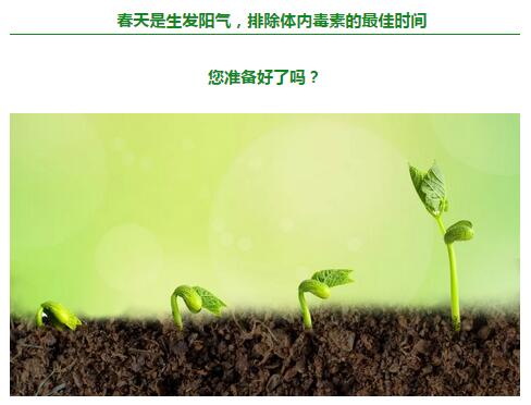 好在春天也是排除体内毒素的最佳时间,因为春天是万物生发的时候,身体的毒素也趁机外发,毒素外发也正是我们借机清除的大好时机!