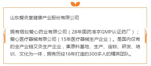 · 全产业链艾灸企业,集原料基地、生产、连锁、研发、培训、文化为一体。