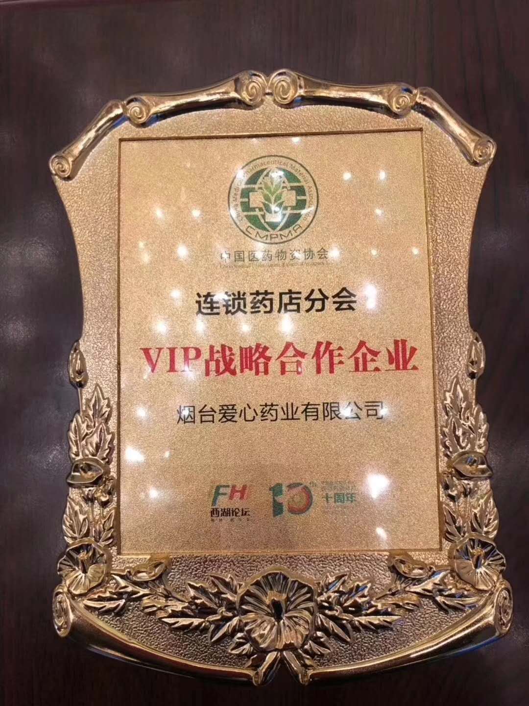 经过评选,烟台爱心药业有限公司被中国医药物资协会授予VIP战略合作企业。