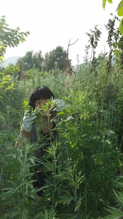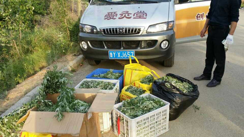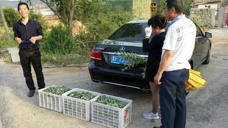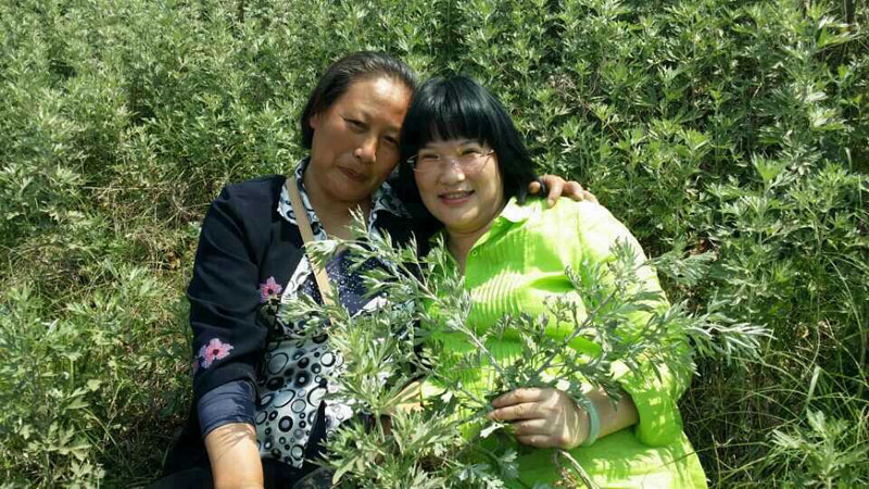 我们董事长王政娟女士,来到我们的仙岛艾叶基地,视察收购情况。基地大姐和董事长亲密合影。 现在艾叶高的长到2尺,矮的长到2寸,从现在收到六月底,我们要完成几百吨的收购计划。 我们董事长亲自走访每个收购点,您辛苦了!