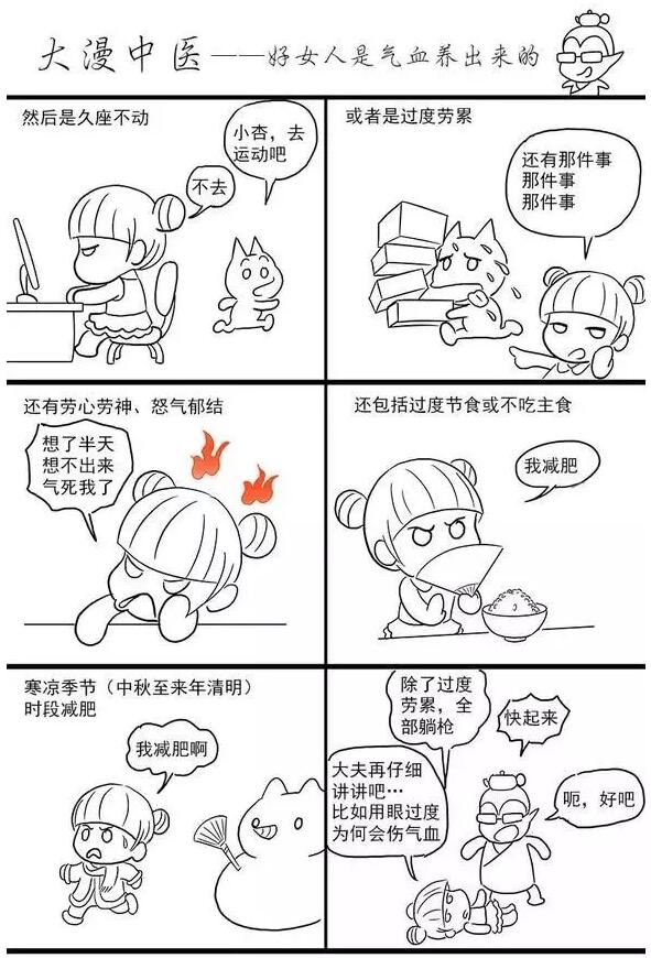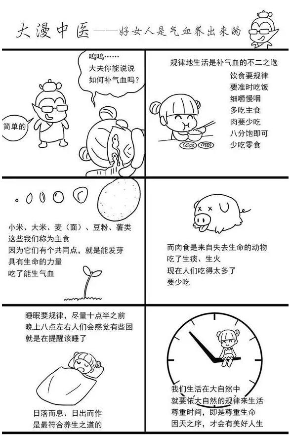 接下来,我们通过漫画来学习学习,如何做一个气血充盈,健康靓丽的女子吧!